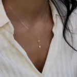 aşk ve romantizm sembolizminden ilham almıştır. Mitolojik tanrı Cupid’in aşk okunu temsil eden stilize ok şeklindeki narin kolye, aşk oku kolyesine özel bir anlam kazandırıyor. Ok, üst uçta okun tüylerini temsil eden birkaç ince çizgiye sahipken, okun ucu ışıltılı, küçük kübik zirkon taşlarla süslenerek ayrıntılı bir şekilde işlenmiştir. Telkari altın zincir, boynuna nazikçe oturur ve aynı anda hem modern hem de zamansız görünen benzersiz kolyeyi vurgular. Bu kolye, özel günler için veya günlük sevgi ve bağlantı sembolü olarak mükemmel bir aksesuardır.